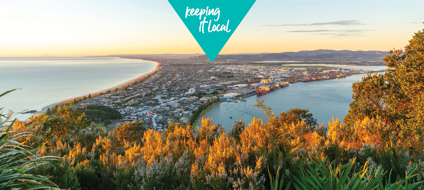 A brand re-fresh that encapsulates warmth with a local representation of Tauranga Moana inspired by our local flora the pohutukawa flower, and the subtle use of our supporting phrase 'keeping it local' alongside local photography.